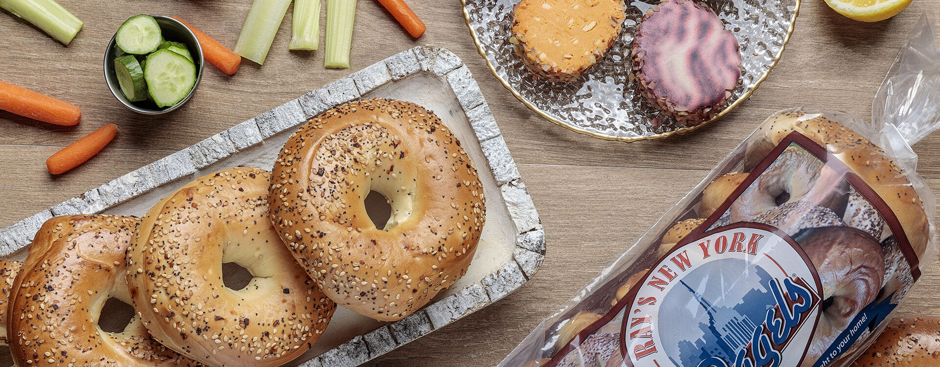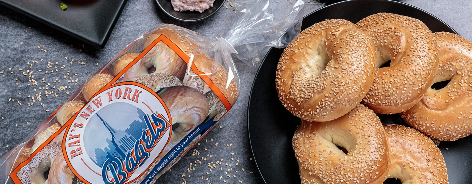 Named after Bialystok Poland, the bialy is the perfect combination between a bagel and an English muffin. Ray’s New York Bagels carries on the tradition of hand pulling the bialys into shape and schmearing the onions into the center.